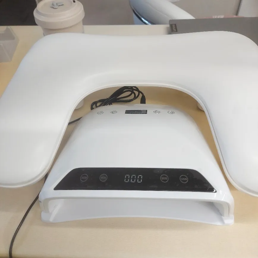Il est beau et grand, donc je peux y mettre les deux mains ou les deux pieds en même temps, ce qui me fait gagner beaucoup de temps. J'aime aussi le fait qu'il dispose de différents réglages de minuterie, ce qui me permet de choisir le bon temps de durcissement en fonction du vernis. La conception semble robuste et fonctionne exactement comme décrit. Cela rend définitivement le fait de me faire les ongles à la maison beaucoup plus facile et plus professionnel.